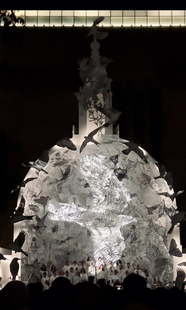 Reflection:Each endangered wildlife presents a sense of holiness, beauty and a sense of reverence for nature wrapped in half a church. With the choir singing, this installation by Cartier immersed me in a feeling of respect and appreciation for life. It is also a new inspiration for the combination of man and nature in the form of art.