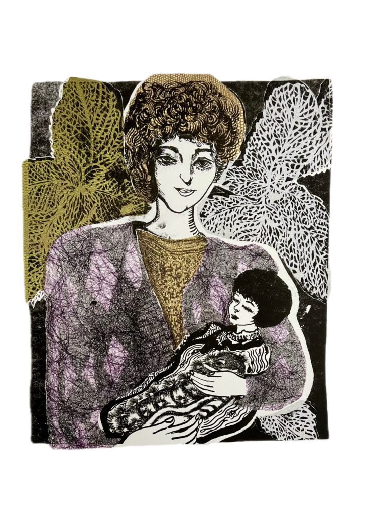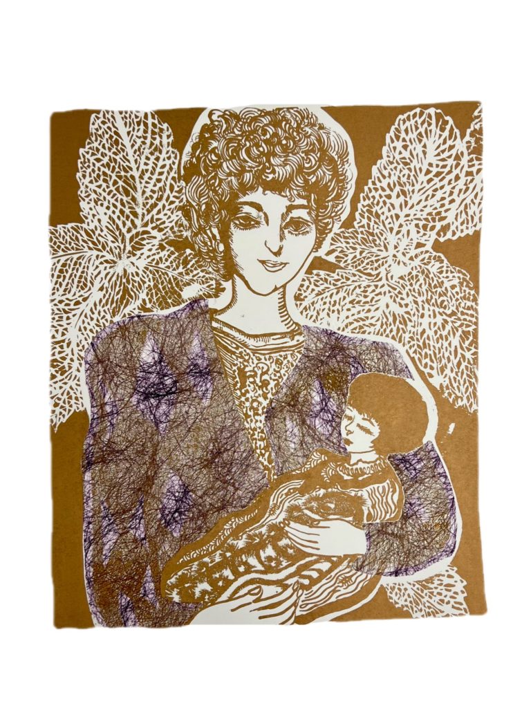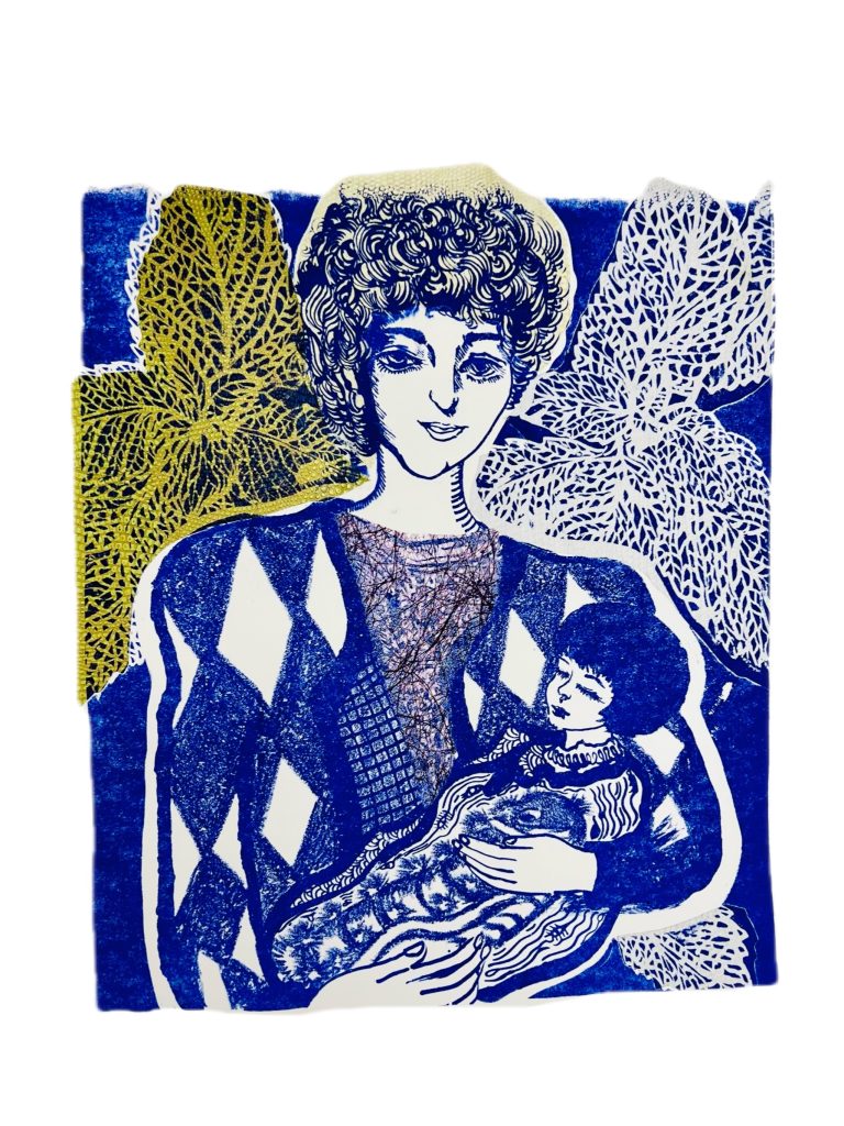 This week I completely finished the stone boards I had made last term and spent a few days trying out different colours and how the collage would look. After the stone had been left for the winter holidays the inks were in very good condition and could be printed directly on dry paper.
