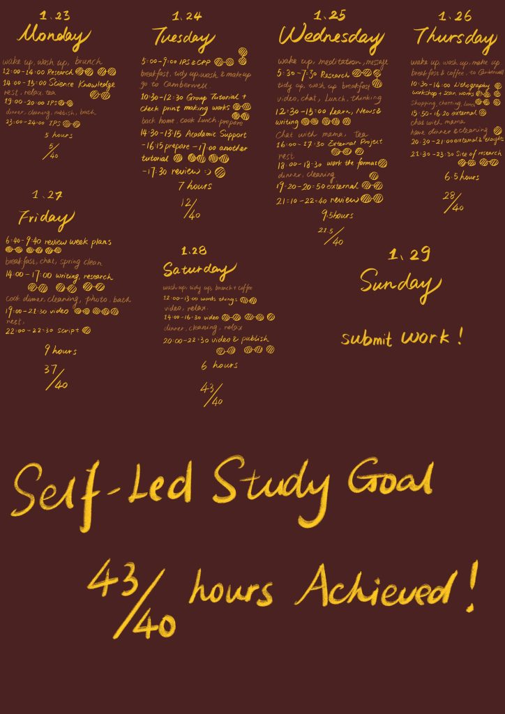 The process of sorting them out was also a test of myself, an unrelenting self-revelation that also achieved the healing effects of the art therapy autobiographical method. Whether it was the streamlining of the content to 8,000 words or the timing of the learning input and creative output, I achieved it all, which makes me feel more confident about my future written expression and self-analysis.