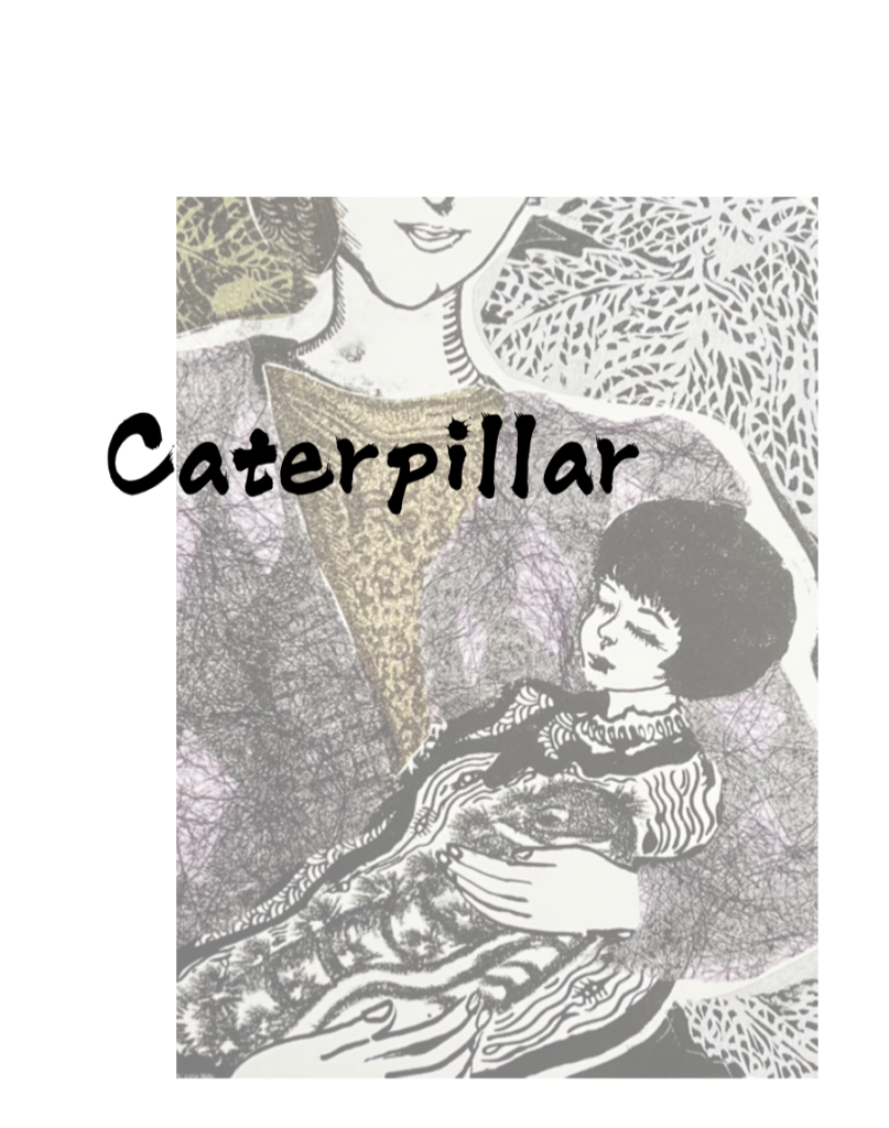 The cover image is a screen print of my creation, in which the butterflies, which are like words, come from a state of mind flow, inspired by the Heart Sutra. They move from shaped butterflies, to lines and blocks, and finally to images of words that are not interpreted, representing my responses in different states, and as recorded in this booklet, there are exactly 99 of them.